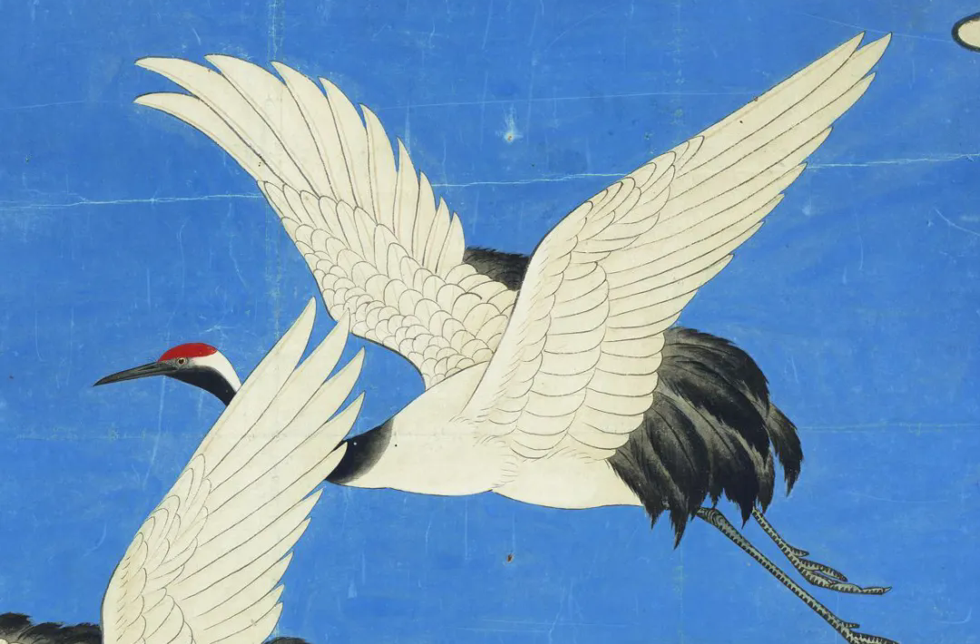 他拿手的石青平填,本该让鹤羽冷艳如瓷,可他偏在青蓝里掺了丝暖调,像给仙鹤披了件“莫兰迪色外衣”,既保留了工笔的细腻,又透出股“怪异着”的自便感。更绝的是泥金瘦金体题跋——那细如发丝的笔画,硬是把“贺寿”俩字写得像金线绣的,可题名处又挑升留了块“空缺补丁”,仿佛在说:“金贵归金贵,留点呼吸的地儿才不闷!”