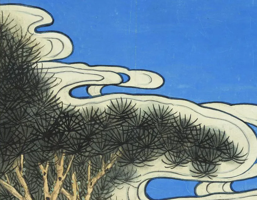 整幅画最“心思”的,是松针的画法——他没按传统勾叶脉,反而用粗笔“乱戳”出一丛丛,像极了寿星公的白胡子,蓬松又带点俏皮。这哪是贺寿?分明是于非闇借画撒欢,用“仙鹤蹦迪+松针烫头”的混搭风,把“长命”的严肃命题,酿成了“活得郁勃”的幽默宣言——毕竟,五十九岁的东说念主,谁不念念当个“会飞的鹤”,而不是“站桩的标本”呢?