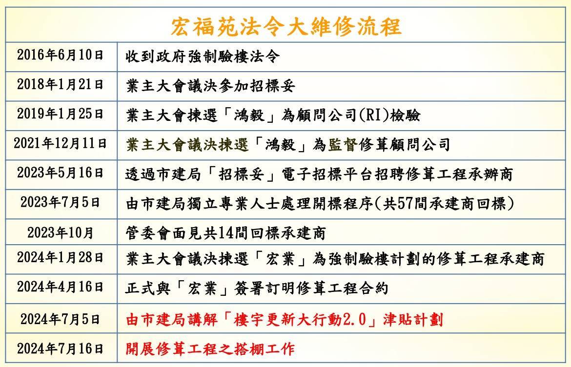 2016年6月10日,彼时房龄33年的宏福苑收到政府的强制验楼端正,在进程长达8年的招标款式后,于2024年与宏业建筑工程有限公司签署了“大维修”工程的条约。