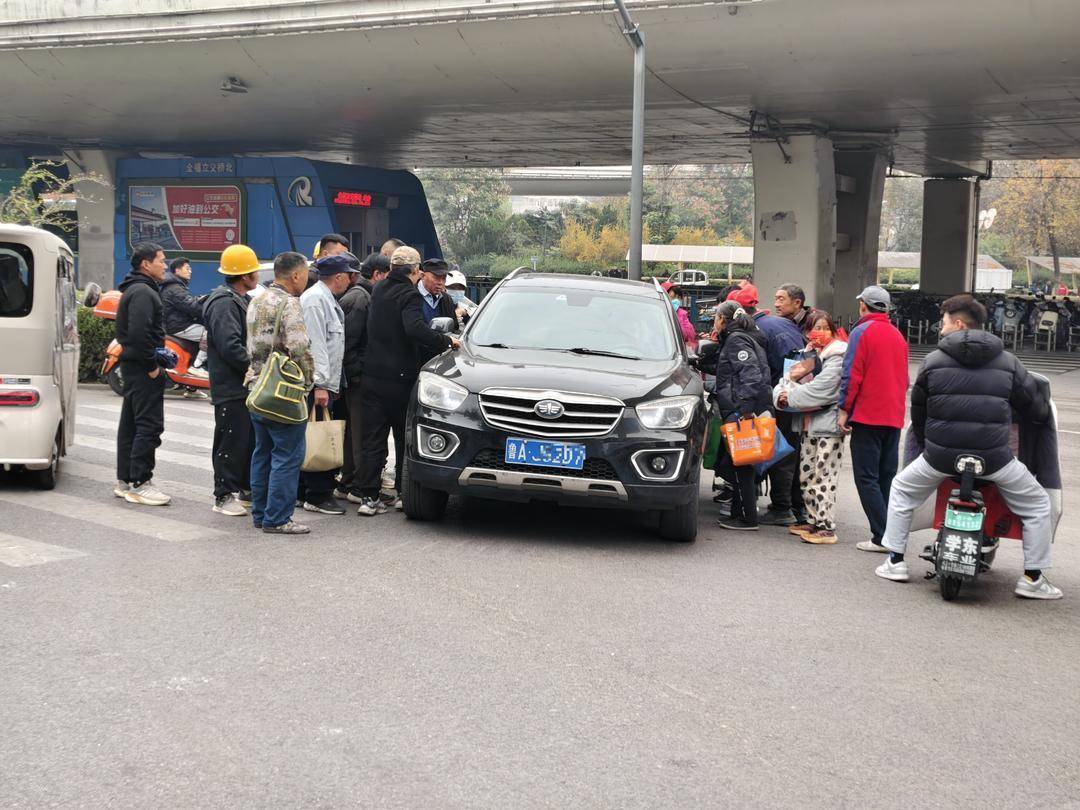 此时,全福立交桥下已挤满了裹着深色棉服的零工群体。济南市济阳区、德州市禹城市等邻近县(市、区)驶来的面包“班车”接连到达,在桥下排成长龙,更多的东谈主下车,加入到立交桥劣等工的东谈主群。