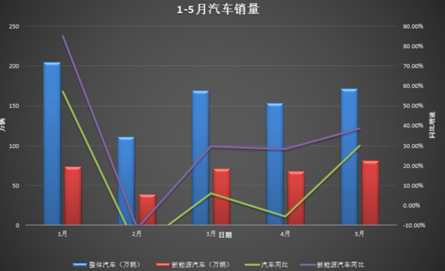 5月,新动力汽车产量达到88.1万辆,同比增长31%,环比增长9.9%;销量为80.4万辆,同比增长38.5%,环比增长18.7%。新动力汽车阛阓浸透率保管在高位,达到47%,同比增长14个百分点。
