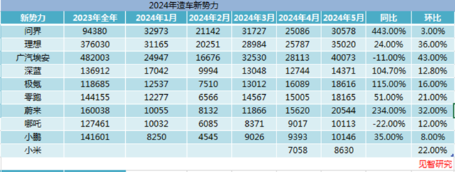 具体来看,广汽埃安、理念念和蔚来拿下环比销量增速前三,环比增速隔离是43%、36%和32%。